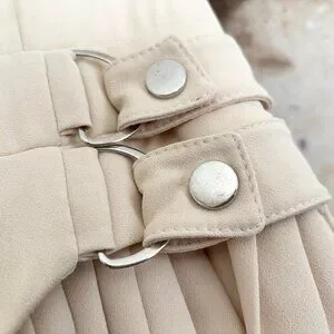Elegant mini dress with pleated skirt. Short sleeves and wrap design. Perfect for work outings. This designer does run small by 1-2 sizes. Fits like a 4/6. Beautiful beige color on darker complexion’s. Sold out on the website.