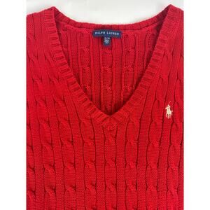 Ralph Lauren Size XL Women's Cable Knit V-Neck Sweater Fisherman Gold Pony Red