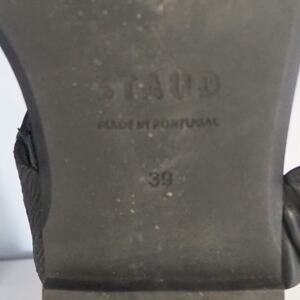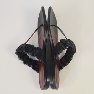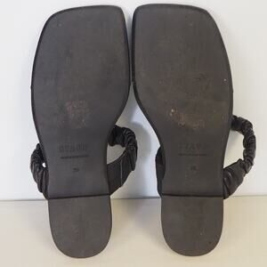 Staud Ava Leather Sandals Black Women's Size 39 UK 9 US T-Strap Ruched