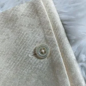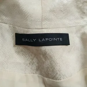 Sally LaPointe silky belted snake-effect crepe de chine dress coat is tailored for a relaxed fit. Designed with long sleeves, its belted waist is detailed with a D-ring accent for a personalized fit. Ecru off white. Excellent lightly used condition. Retail $1600. As seen on the runway.