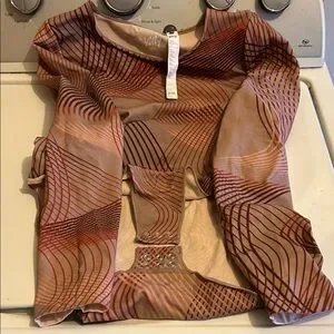 Chic YITTY top with geometric design. Features red and brown hues. Long sleeve. Tags taken off but never worn. BRAND NEW.