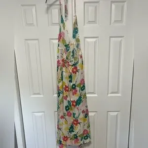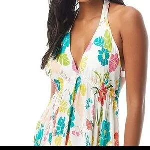 Kate Spade New York Tropical Floral Halter Maxi Dress cover up size Large