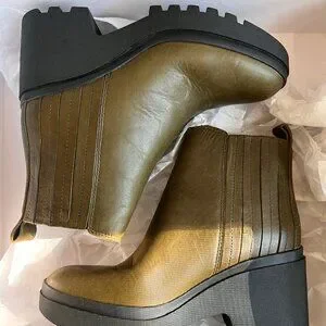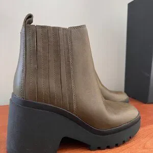 Eileen Fisher Kat Chelsea Boot in Olive Leather w/ Lug Sole - Sz 6.5