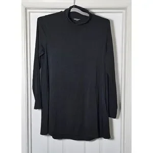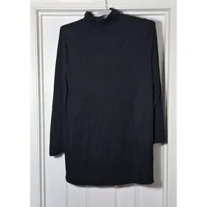 Eileen Fisher Scrunch Neck Tunic Long Sleeve Black Stretch Size Medium Tencel
