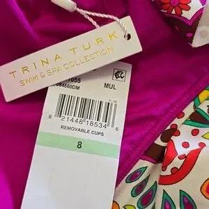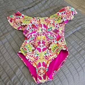 Trina Turk Colorful Off-Shoulder Swimsuit Sz 8 Nwt