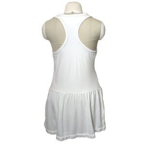 This is a Y2K vintage Juicy Couture sleeveless mini dress in white micro terry fabric.