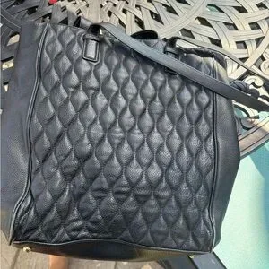 Chic black quilted tote with elegant gold zipper. Perfect for versatile style.