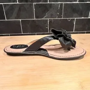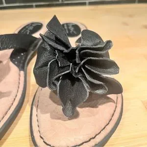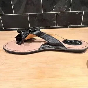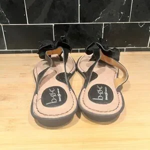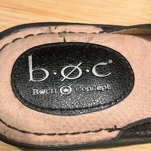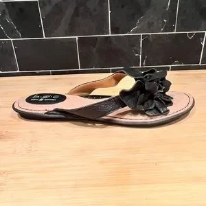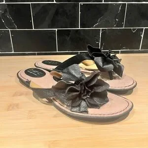 Born Concept Sz 8.5 Padded Black Tan Leather Strap Flower Sandals Slip Ons