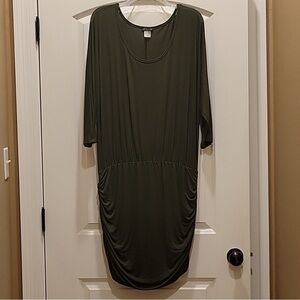 This anything-but-basic Ruched Detail Dress is bound to be a new fave! The slightly bloused bodice complements the ruched, curve-hugging skirt, defining your hips and softening your torso. The 3/4 sleeves balance out the scoop neckline and mid-thigh length, which can be ruched up shorter.