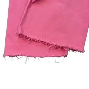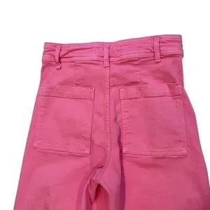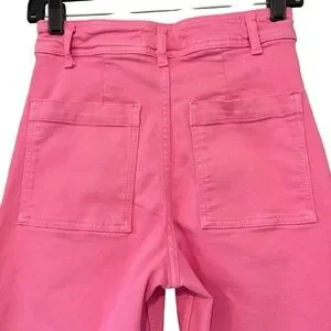 Zara Hot Pink Marine Straight High Rise Wide Leg Jeans Raw Hem, Sz 4