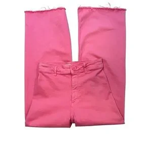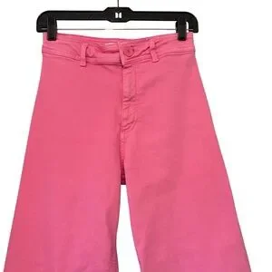 A bloggers favorite! Zara Hot Pink Marine Straight High Rise Wide Leg Jeans Raw Hem. Fabric tag missing. 80% cotton, 8% polyester, 2% Elastane.