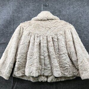 Cabi 706 Alpine Shrug Womens S Ivory Faux Fur Plush 1/2 Sleeve Cropped
