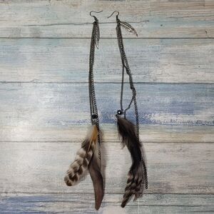Pre-Own Bohemian Feather Chain Long Earrings.