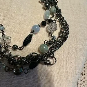 Elegant Multi-Chain Necklace with Black and Silver Accents. Vintage