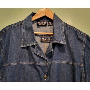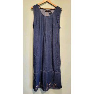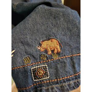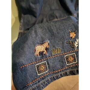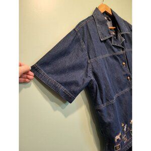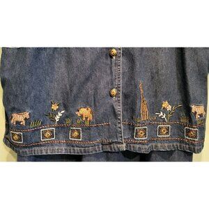 Vtg Deadstock Denim Safari Animal Embroidered Modest 2pc Maxi Dress & Jacket XL