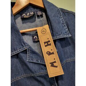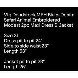 Vtg Deadstock MPH Blues Denim Safari Animal Embroidered Modest 2pc Maxi Dress & Jacket