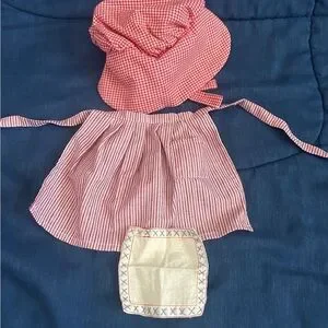 American Girl Kirsten Meet Apron, Spoon Bag, Spoon, Bonnet, Stockings, Boots