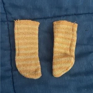 Clothing and Accessories are in used condition. The Handkerchief has flecked fabric and is stained, the spoon bag has flecked fabric, and 1 of the boots is bent as shown. Please view all photos carefully