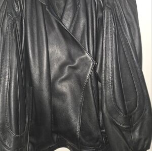Vintage Size 3 Black Leather Jacket With Unique Pleated Sleeves