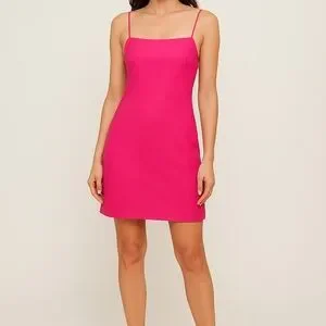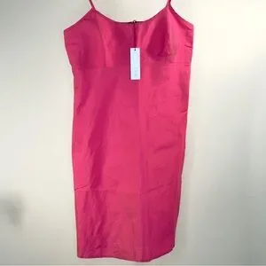 This Frances Valentine slip dress is a stunning vibrant hot pink, perfect for cocktails, parties, weddings, or a night out.