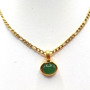 New without Tags elegant gold necklace that features a stunning green jade pendant, perfect for adding a touch of sophistication to any outfit.