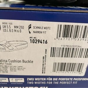 Elegant Birkenstock sandals in a bronze finish. Accented with a gold buckle.