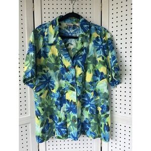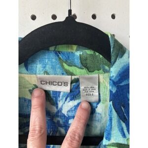 Chicos Women's Button Up Shirt XL (3) Linen Summer Vacation Floral Short Sleeve