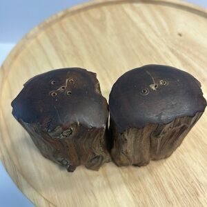 Vintage Rustic Wood Log Salt Pepper Shakers Cabin Mountain Decor Handcrafted