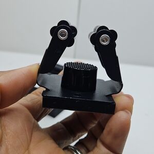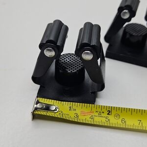 Set of black wall mount broom holders. Durable and easy to install.
