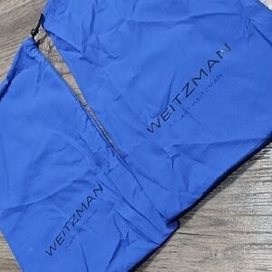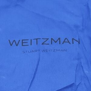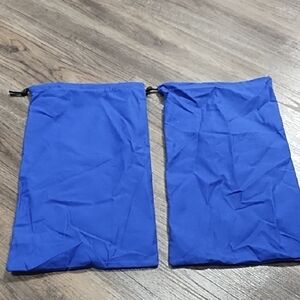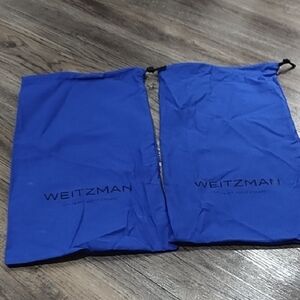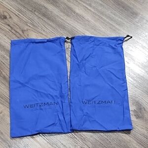 Pair of vibrant blue shoe bags by Stuart Weitzman. Ideal for travel and storage.