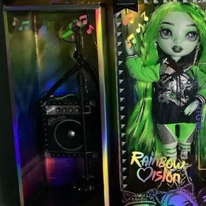 Vibrant Neon Shadow High doll and play set. Features with unique styles. Harley Limestone doll with outfits and pairs of shoes.