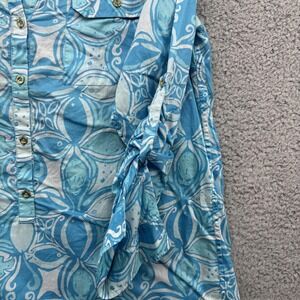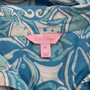 Lilly Pulitzer Captiva Tunic Shirt Womens Medium Print Button Front Blue India