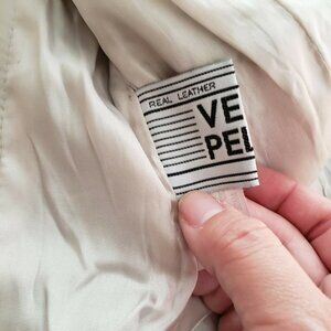 RARE Vera Pelle Lasercut Side Panel Real Soft Leather Collared Seafoam Jacket S*. Condition is "Pre-owned".