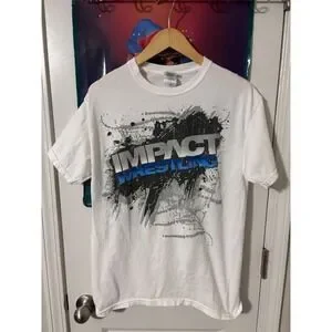 Keywords: IMPACT Wrestling, T-shirt, Men's, White, Graphic Tee, Wrestling, Short Sleeve, Casual, Gildan, Medium, Size M, Logo Tee, Sports, Fan Apparel
