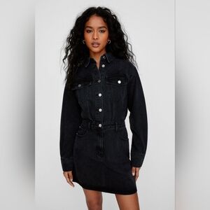 NASTY GAL Long Sleeve Cotton Denim Shirtdress