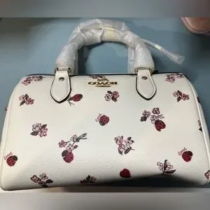 Chic Coach satchel with floral and ladybug design. Stylish and versatile for any occasion.