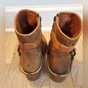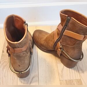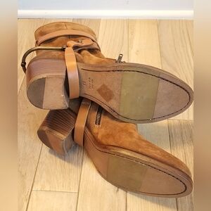 Sundance Ambleside Italian made goegeous saddle color suede with leather straps and a metal spur like detail.
