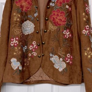 Savanna Jane Heavily Embroidered Open Front Brown Jacket Sz L