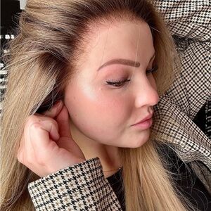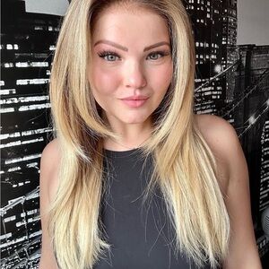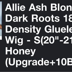 Hairvivi Allie blonde wig with ashy tones and dark roots. Lace is cut but only worn like 4 times. Has layers