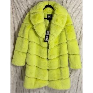 Bold faux fur jacket in bright lime by River Island. Eye-catching and stylish. New- never been worn.