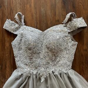 Grey silver sparkle mini dress homecoming wedding US 8 corset back chest support