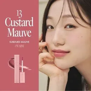 Enhance your look with Rom&nd’s 13 Custard Mauve Dewyful Water Tint, a subtle creamy mauve. This cool toned shade adds a touch of elegance to any style.