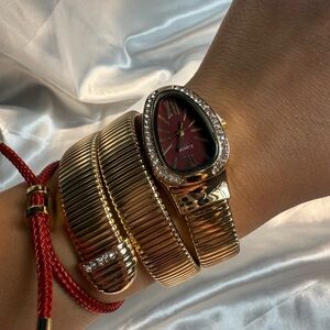Serpenti Snake Wrap Elegant Gold Women's Watch with Burgundy Dial