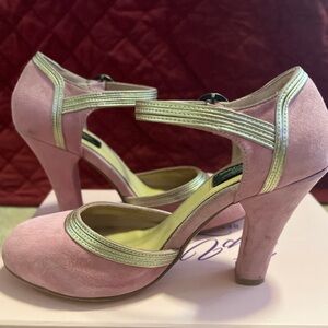 Lola Ramona Rose Pink Gold Suede Heels Great Gatsby Retro Hollywood