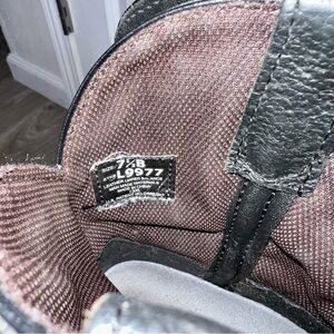 Stylish black western boots, square toe. Lightly worn. Intricate stitching design. 8” shaft and heel measurement photos posted. Size 7.5B. Open to reasonable offers!