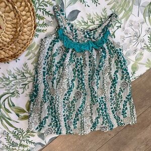 This charming kids sleeveless blouse features a delightful teal and white design, perfect for playful days. Crafted for comfort and style, it's an ideal choice for your child's wardrobe.