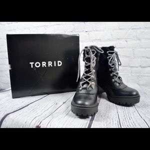 Brand New Torrid Faux Leather Fur Hiker Black Boots Size 10;WW Man made materials with rubber soles; Heel Height Approx 3” Extra Cushioned Footbed; This a must staple in your closet Sold Out On LIne