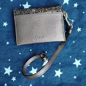 100% Authentic Coach Bronze Glitter Card Holder. Can be worn as a wristlet as well.