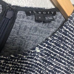 Theory Tillora Tweed Skater Dress Sleeveless A-Line Mini Dark Navy White Women’s Size 2