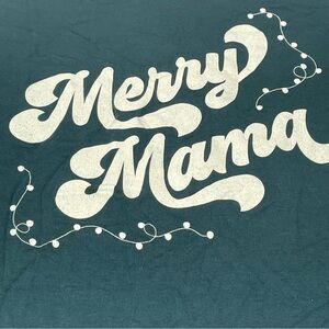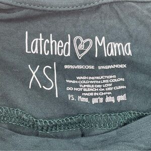 Latched Mama Nursing & Maternity 3/4 sleeve top size XS. Merry Mama Christmas Holiday Tee. This shirt is dark green. Has slight cracking on the graphic, loose strings in the armpit (please see pics showing the strings and the underside) and slight pilling in the armpits. 95% viscose and 5% spandex. Very stretchy and comfy.